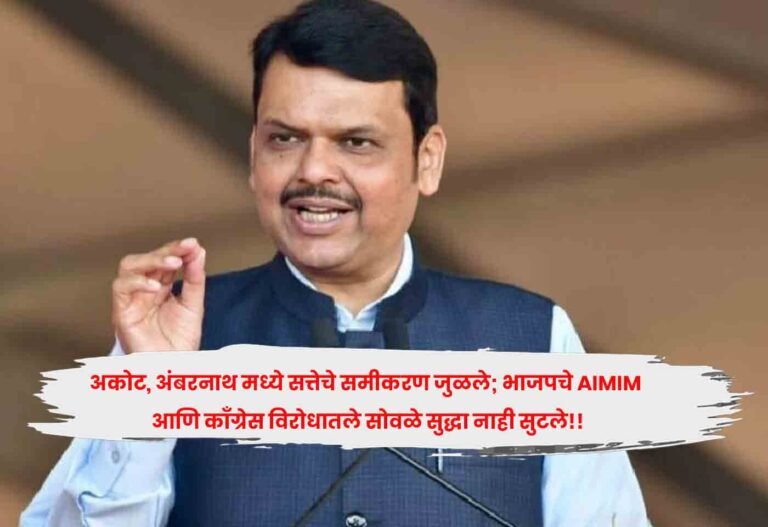 рдирд╛рд╢рд┐рдХ : рдЕрдВрдмрд░рдирд╛рде рдЖрдгрд┐ рдЕрдХреЛрдЯ рдордзреНрдпреЗ рднрд╛рдЬрдкрдиреЗ рдЕрдиреБрдХреНрд░рдореЗ рдХрд╛рдБрдЧреНрд░реЗрд╕ рдЖрдгрд┐ AIMIM рдкрдХреНрд╖рд╛рд╢реА рдпреБрддреА рдХреЗрд▓реНрдпрд╛рдиреЗ рднрд╛рдЬрдк рд╕рддреНрддреЗрд╕рд╛рдареА рдХрд╛рд╣реА рдХрд░реВ рд╢рдХрддреЛ, рдЕрд╢реА рд╡рд╛рддрд╛рд╡рд░рдг рдирд┐рд░реНрдорд┐рддреА рдорд╣рд╛рд░рд╛рд╖реНрдЯреНрд░рд╛рдд рдЭрд╛рд▓реА. рддреНрдпрд╛рдореБрд│реЗ…