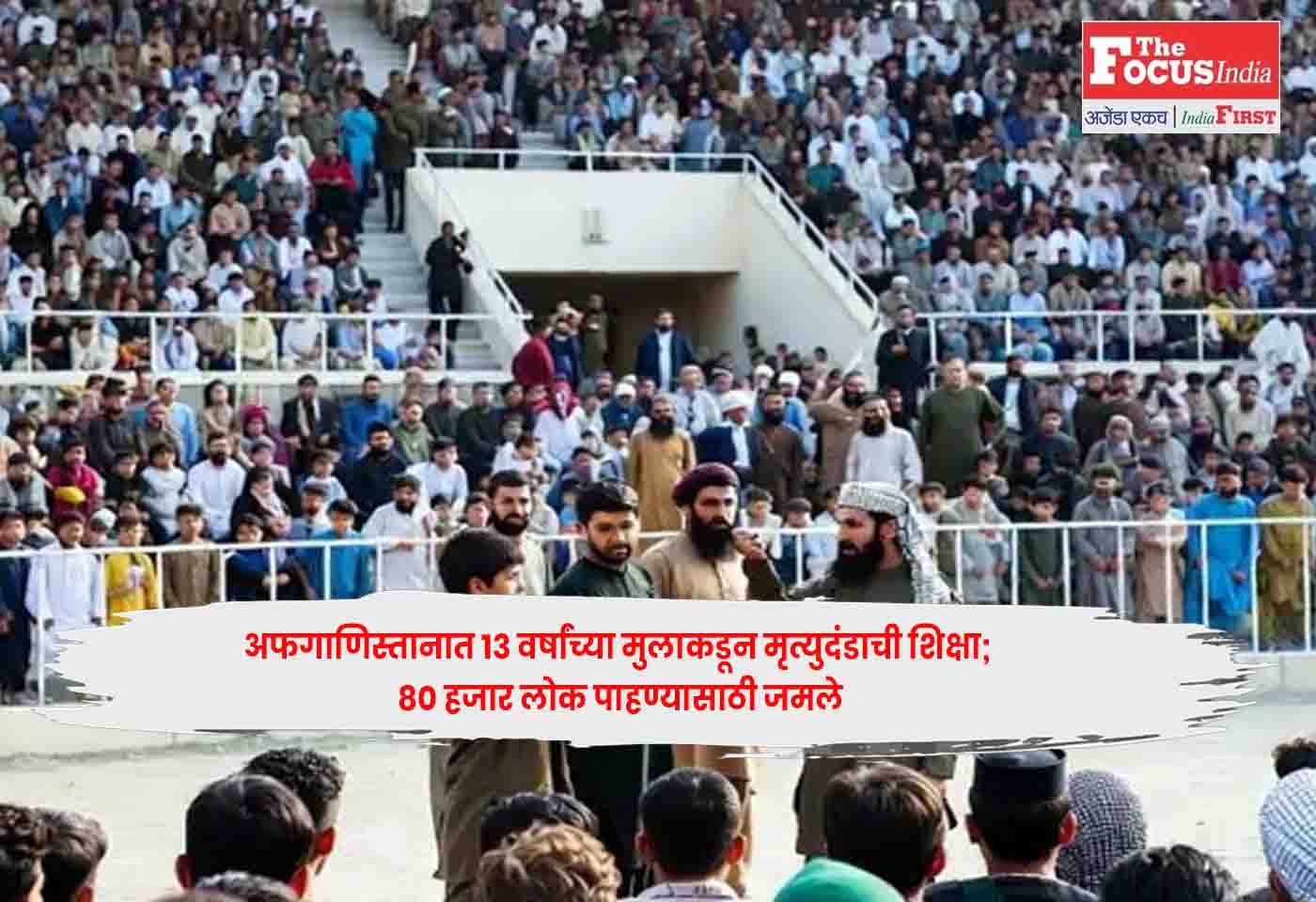काबूल : Afghanistan  अफगाणिस्तानच्या खोस्त प्रांतात मंगळवारी एका स्टेडियममध्ये 80 हजार लोकांसमोर एका गुन्हेगाराला गोळ्या घालून ठार करण्यात आले. अमू न्यूजच्या वृत्तानुसार, गोळीबार करण्याचे काम एका 13 वर्षांच्या मुलाने केले.Afghanistan