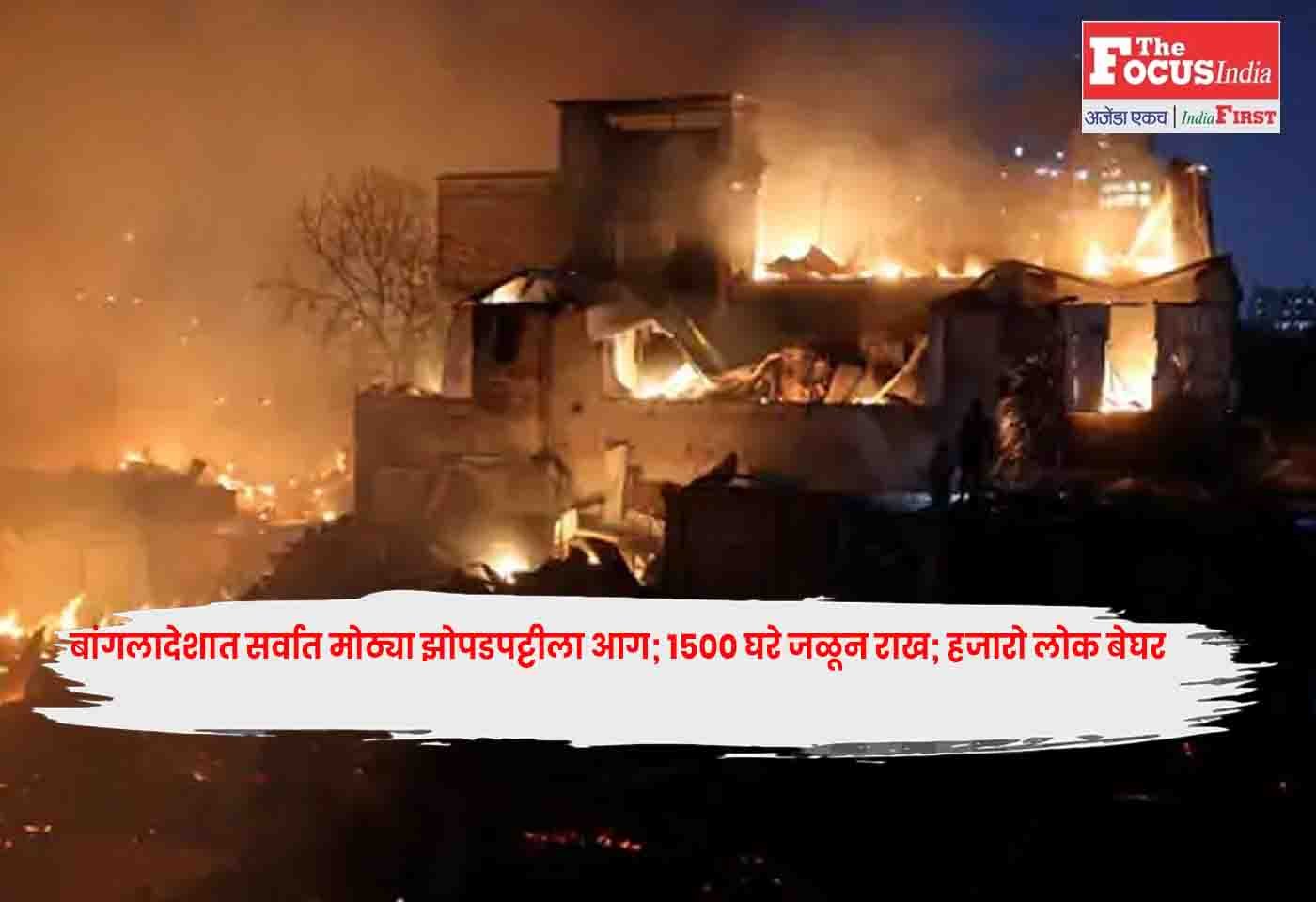 ढाका : Bangladesh बांगलादेशची राजधानी ढाका येथील सर्वात मोठ्या कोराइल झोपडपट्टीत मंगळवारी संध्याकाळी आग लागली, ज्यात 1500 हून अधिक घरे जळून खाक झाली. यामुळे हजारो लोक बेघर झाले आहेत. तर, गर्भवती महिला आणि मुलांसह अनेकांनी थंडीत रात्र काढली.Bangladesh