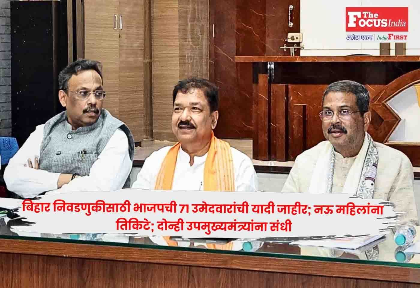 भाजपने मंगळवारी बिहार निवडणुकीसाठी ७१ उमेदवारांची पहिली यादी जाहीर केली....