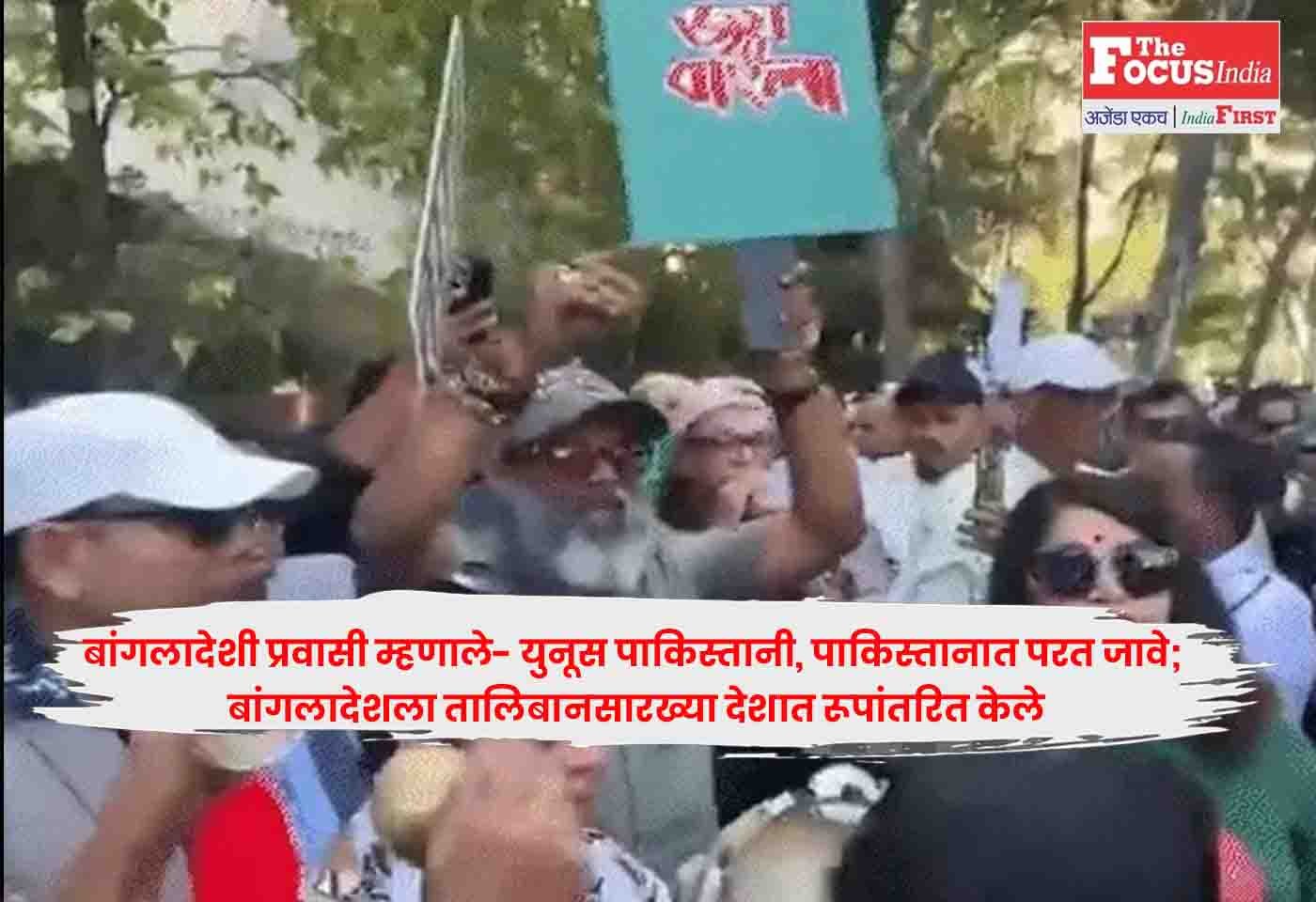 शुक्रवारी न्यूयॉर्कमधील संयुक्त राष्ट्रांच्या मुख्यालयाबाहेर बांगलादेशी प्रवासींनी मुख्य सल्लागार मुहम्मद...
