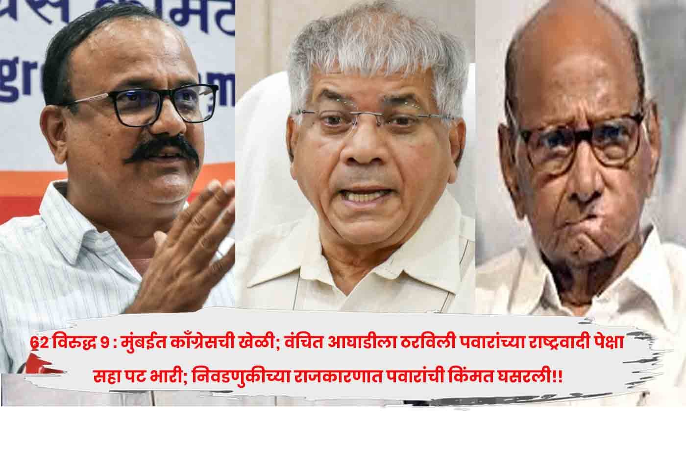 मुंबईत काँग्रेसची खेळी; वंचित बहुजन आघाडीला ठरविली शरद पवारांच्या राष्ट्रवादीच्या...