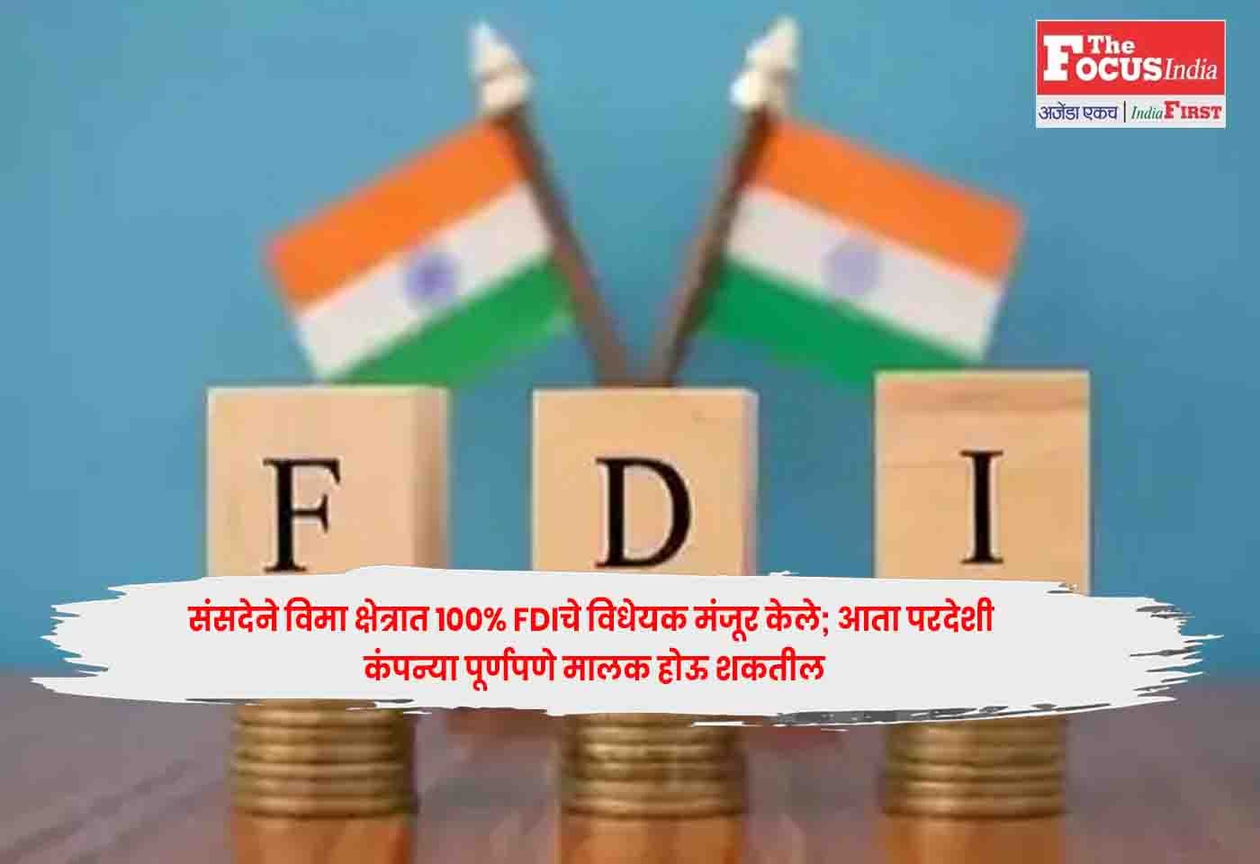 संसदने विमा क्षेत्रात परकीय थेट गुंतवणुकीची (FDI) मर्यादा 74% वरून...