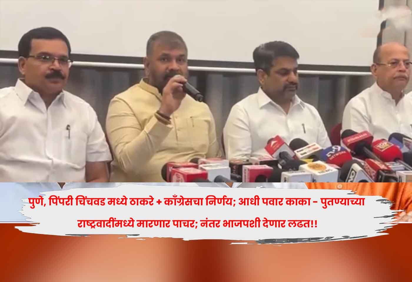सचिन अहिर आणि काँग्रेसचे आमदार सतेज पाटील यांनी पुणे आणि पिंपरी चिंचवड या दोन शहरांमध्ये उद्धव ठाकरेंची शिवसेना आणि काँग्रेस यांची आघाडी जाहीर केली. ही आघाडी जाहीर करताना त्यांनी पवार काका – पुतण्यांच्या राष्ट्रवादींमध्ये पहिली पाचर मारायची आणि नंतर भाजपशी लढत द्यायची, ही स्ट्रॅटेजी ठरवली. पुणे महापालिकेच्या 165 जागांवर आघाडी जाहीर केली. उरलेल्या 65 जागांपैकी काही जागा दोन्ही राष्ट्रवादींमधून काँग्रेस किंवा शिवसेनेत आलेल्या नेत्यांसाठी आणि कार्यकर्त्यांसाठी रिकाम्या ठेवल्या. कारण पवार काका – पुतणे एक झाल्यामुळे ज्यांची तिकिटे परस्पर कापली जात आहेत, त्यांनी उद्धव ठाकरे यांच्या शिवसेनेशी आणि काँग्रेसशी संपर्क ठेवलाय. एकदा का त्यांची तिकिटे पवार – काका पुतण्यांनी कापली, की तेच उमेदवार उद्धव ठाकरे यांची शिवसेना किंवा काँग्रेसमध्ये दाखल होणार आणि दोन्ही पक्षाच्या यांना तिकीट देणार असल्याचे सचिन अहिर आणि सतेज पाटील यांनी पत्रकार परिषदेत सांगितले.