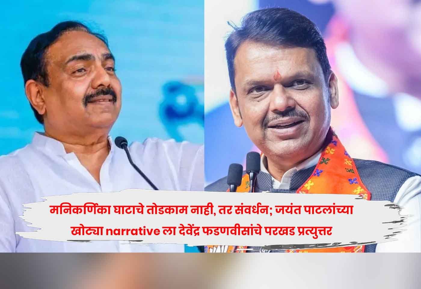 फडणवीस म्हणाले, जयंत पाटील आता थेट उत्तर प्रदेशात गेले. मनिकर्णिका घाट तोडला, अन् काय काय केले? पण काहीही खरे नाहीये. मनिकर्णिका घाटाच्या संवर्धनाचे काम चाललेले आहे. हा घाट एएसआय संरक्षित आहे. त्यामुळे याच्या प्रत्येक गोष्टीची परवानगी एएसआयकडून घ्यावी लागते. जसे आपण रायगडाचे संवर्धन करत आहोत, तसेच मनिकर्णिका घाटाचे संवर्धन होत आहे. मनिकर्णिका घाटावरील अंत्यसंस्कार घाट, लाकूड ठेवण्याची जागा, धार्मिक विधीची जागा, मुंडन जागा, इतर बसण्याची जागा, प्रसादम गृह, पिण्याच्या पाण्याच्या सुविधा या सगळ्या गोष्टी होत आहेत.