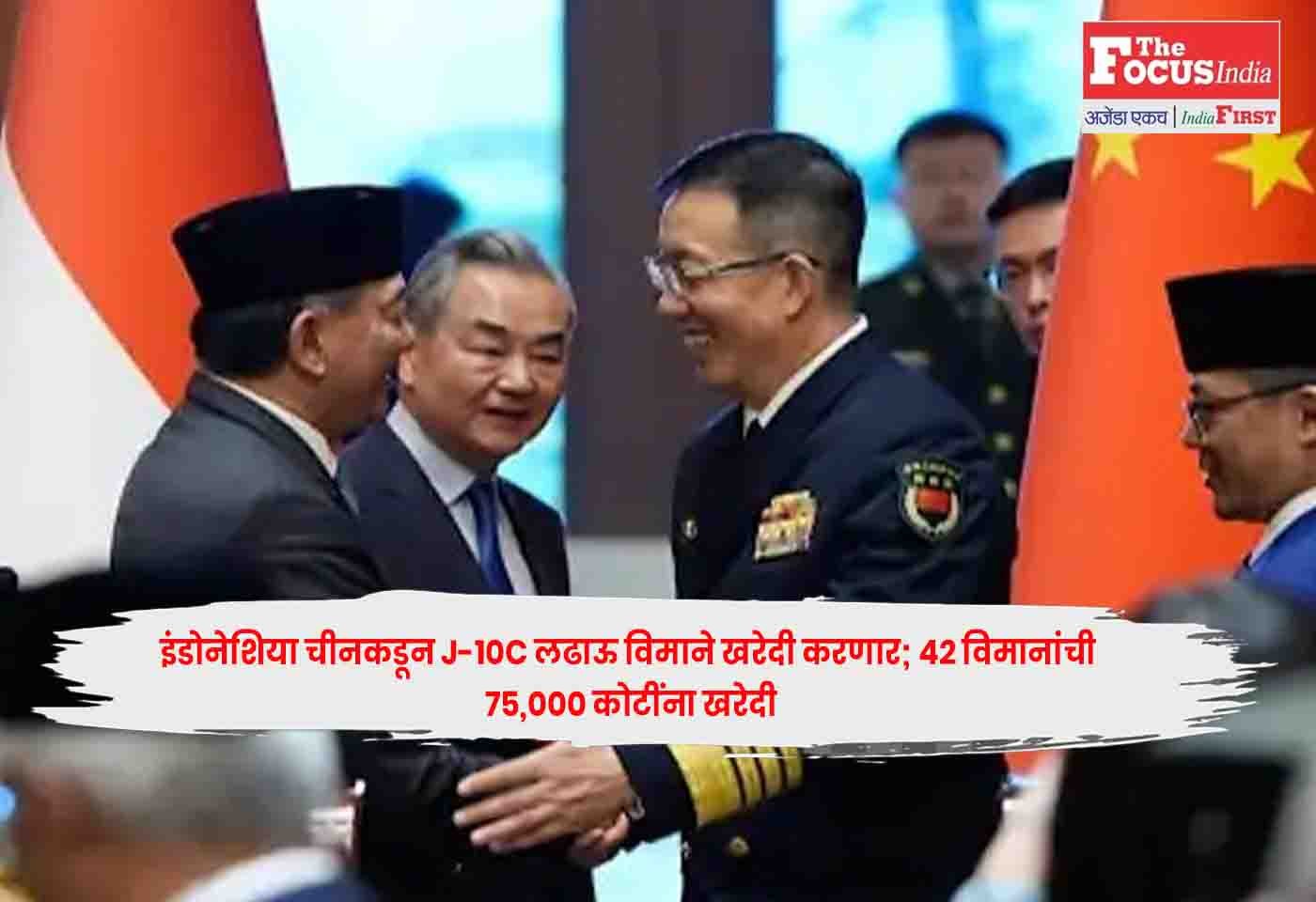 बीजिंग :Indonesia इंडोनेशियाने आपली लष्करी क्षमता वाढवण्यासाठी चीनकडून ४२ J-10C लढाऊ विमाने खरेदी करण्याचा निर्णय घेतला आहे. इंडोनेशिया पहिल्यांदाच एखाद्या बिगर-पाश्चिमात्य देशाकडून विमाने खरेदी करत आहे.Indonesia