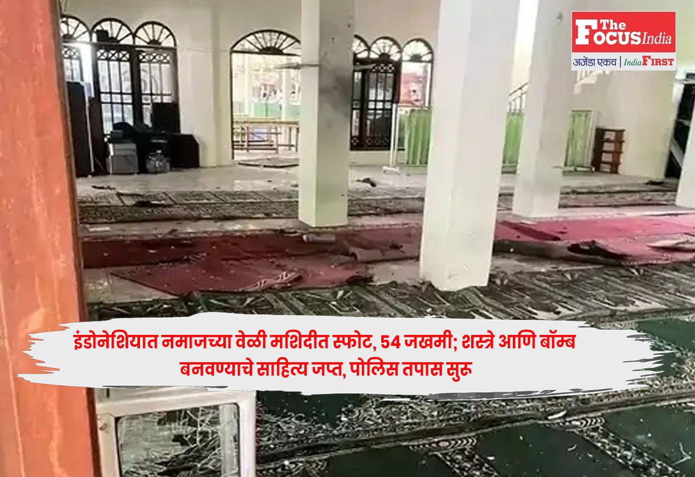 जकार्ता : Indonesia इंडोनेशियातील जकार्ता येथील एका मशिदीत शुक्रवारच्या नमाजदरम्यान स्फोट झाला. यामध्ये किमान ५४ जण जखमी झाले असून त्यांना रुग्णालयात दाखल करण्यात आले आहे.Indonesia
