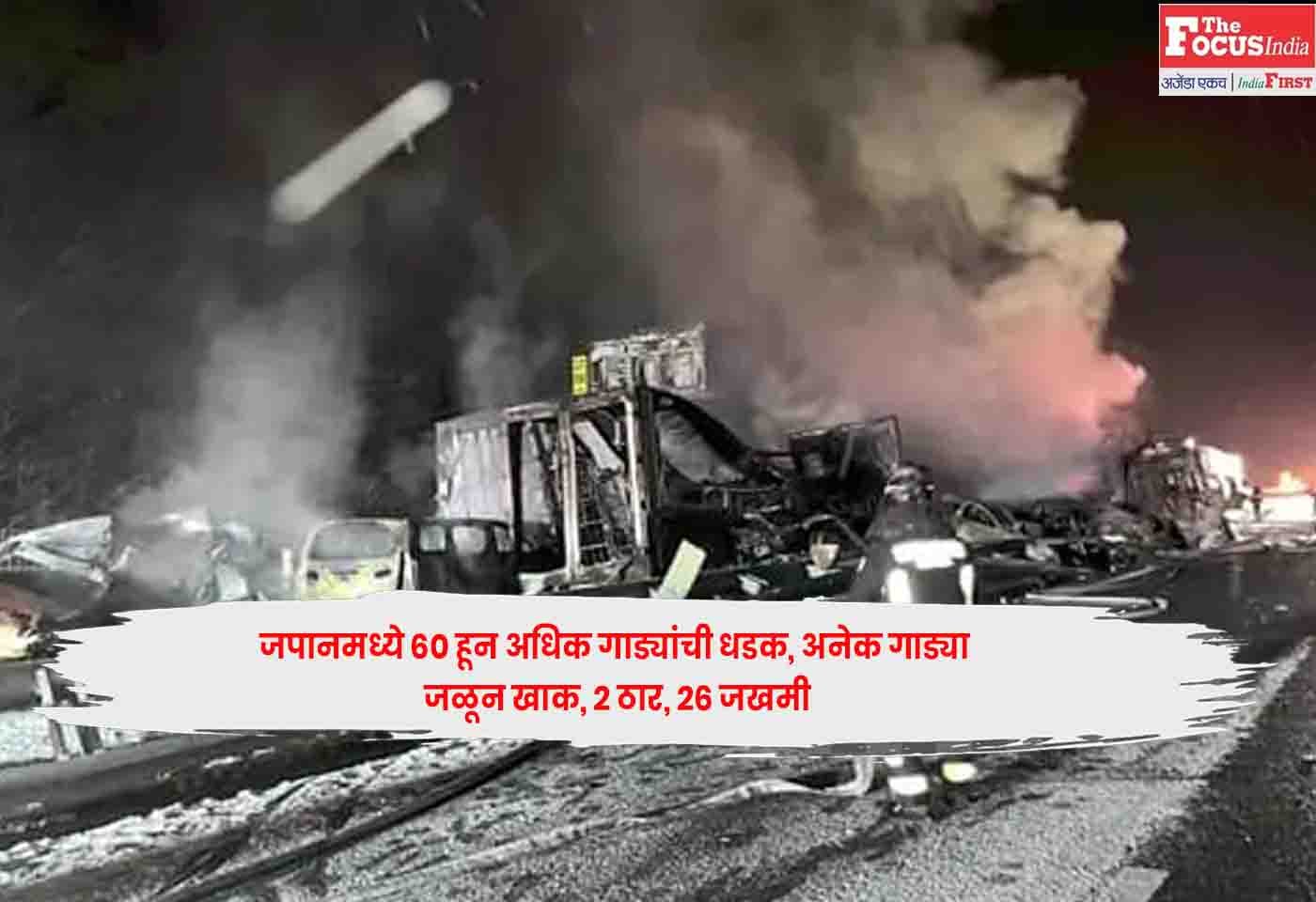 धडकेनंतर एक्सप्रेसवेचा एक भाग बंद झाला. मागून येणाऱ्या गाड्या बर्फाळ रस्त्यावर वेळेत ब्रेक लावू शकल्या नाहीत आणि बघता बघता 60 हून अधिक गाड्या एकमेकांवर आदळल्या. धडकेनंतर गाड्यांना आग लागली.Japan Road Accident
