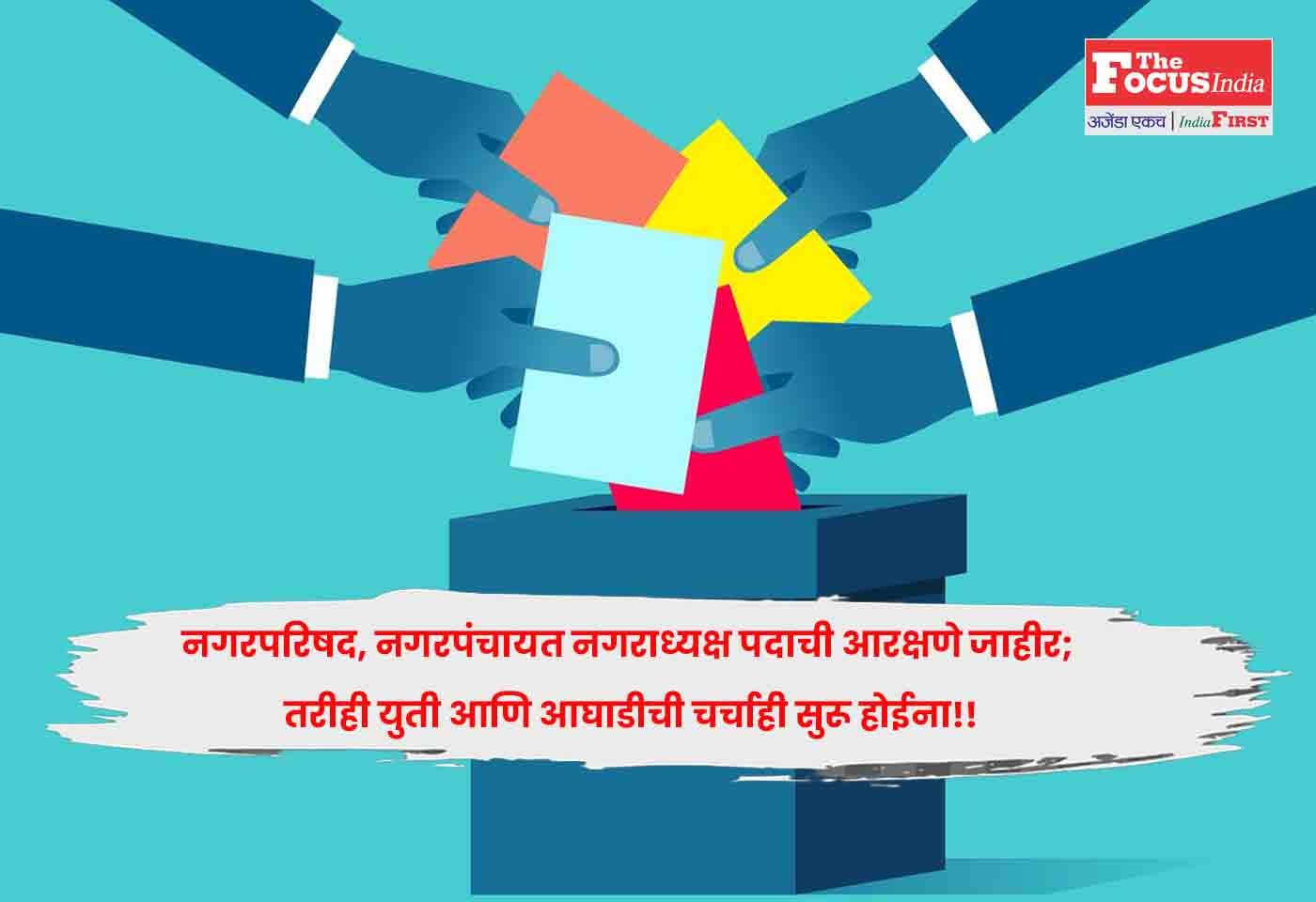 मुंबई : राज्यातील आगामी स्थानिक स्वराज्य संस्थांच्या निवडणुकीच्या पार्श्वभूमीवर आज (6 ऑक्टोबर) मुंबईत 247 नगरपरिषद आणि 147 नगरपंचायतींमधील नगराध्यक्षपदाच्या आरक्षणाची सोडत जाहीर करण्यात आली. तरीही अजून महायुती आणि महाविकास आघाडी यांच्यातल्या घटक पक्षांच्या नेत्यांमध्ये युती आणि आघाडीच्या चर्चा सुरू झालेल्या नाहीत. नगराध्यक्षपद कोणत्या प्रवर्गासाठी राखीव असणार, यावर स्थानिक पातळीवरील राजकीय समीकरणे ठरत असतात. त्यामुळे आजच्या नगराध्यक्षपदाच्या आरक्षण सोडतीकडे राजकीय वर्तुळाच्या नजरा लागल्या होत्या. त्यानुसार आज हे आरक्षण जाहीर झाले.