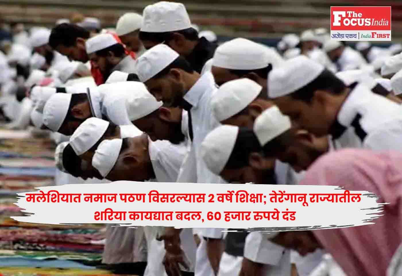 क्वालालंपूर :Malaysia  मलेशियाच्या तेरेंगानू राज्यात, शुक्रवारची नमाज अदा करायला विसरल्यास आता तुम्हाला तुरुंगवास होऊ शकतो. द गार्डियन न्यूजनुसार, तेरेंगानूमध्ये नमाज अदा करायला विसरल्यास किंवा न केल्यास तुम्हाला २ वर्षांचा तुरुंगवास किंवा ३००० रिंगिट (६२ हजार रुपये) दंड किंवा दोन्ही होऊ शकतात.Malaysia