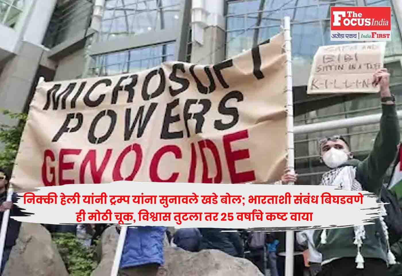 मायक्रोसॉफ्टच्या वॉशिंग्टन येथील मुख्यालयात निदर्शने करणाऱ्या १८ जणांना पोलिसांनी अटक केली आहे. त्यापैकी एक मायक्रोसॉफ्टचा कर्मचारी आहे. नो अझूर फॉर अॅपार्थिड ग्रुपशी संबंधित हे लोक मायक्रोसॉफ्टच्या इस्रायलसोबतच्या क्लाउड कराराच्या विरोधात कार्यालयात निदर्शने करत होते.