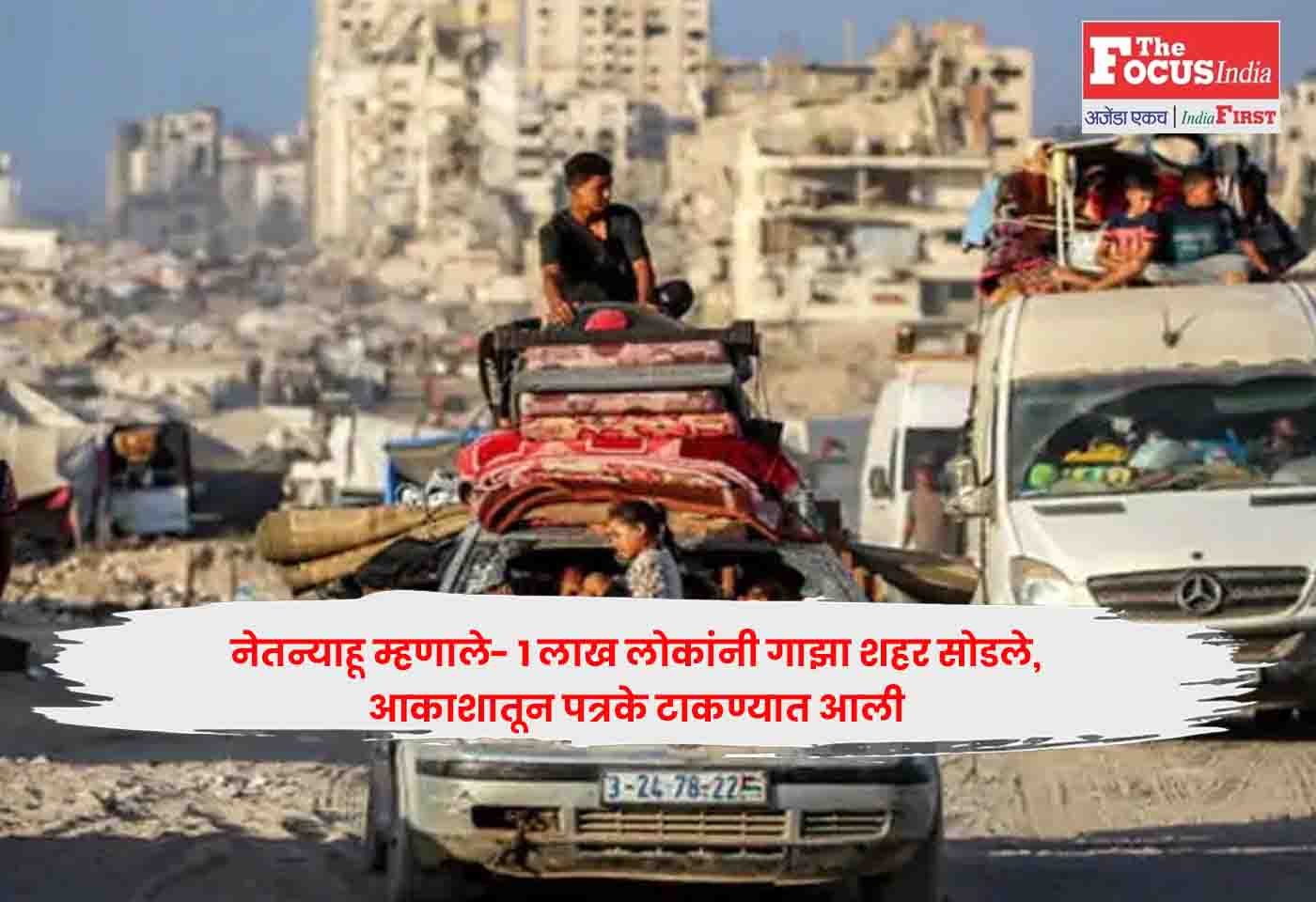 शनिवारी तत्पूर्वी, इस्रायली सैन्याने (IDF) आकाशातून पत्रके टाकली आणि लोकांना शहर रिकामे करण्यास सांगितले. IDF गाझा शहरात मोठ्या लष्करी कारवाईची तयारी करत आहे.Netanyahu