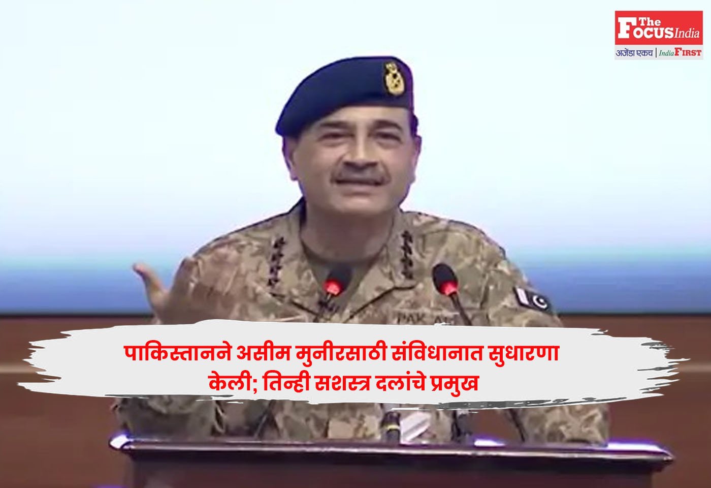 पाकिस्तानी संसदेने संविधानात सुधारणा करून लष्करप्रमुख असीम मुनीर यांना तिन्ही सशस्त्र दलांचे प्रमुख बनवले आहे. आता त्यांना देशाचे पहिले संरक्षण दल प्रमुख (CDF) म्हणून नियुक्त केले जाईल. हे भारताच्या संरक्षण प्रमुख (CDS) सारखेच असेल.