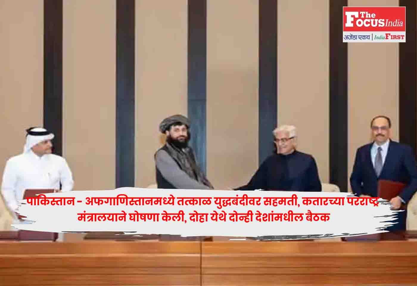 इस्लामाबाद : Afghanistan ९ ऑक्टोबरपासून सुरू असलेला संघर्ष संपवण्यासाठी पाकिस्तान आणि अफगाणिस्तानने शनिवारी तात्काळ युद्धबंदीवर सहमती दर्शवली. कतारच्या परराष्ट्र मंत्रालयाने दिलेल्या निवेदनात ही घोषणा करण्यात आली.Afghanistan