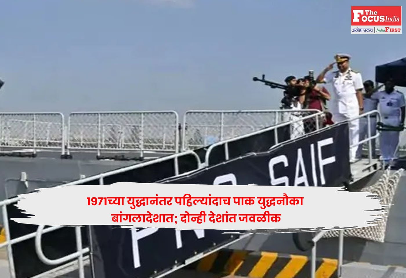 1971च्या युद्धानंतर पहिल्यांदाच शनिवारी पाकिस्तानी युद्धनौका बांगलादेशात दाखल झाली. नौदलाची पीएनएस सैफ बंगालच्या उपसागरातून प्रवास करून दोन्ही देशांमधील संरक्षण संबंध मजबूत करण्याच्या उद्देशाने चार दिवसांच्या सदिच्छा भेटीसाठी बांगलादेशी बंदरात पोहोचली.
