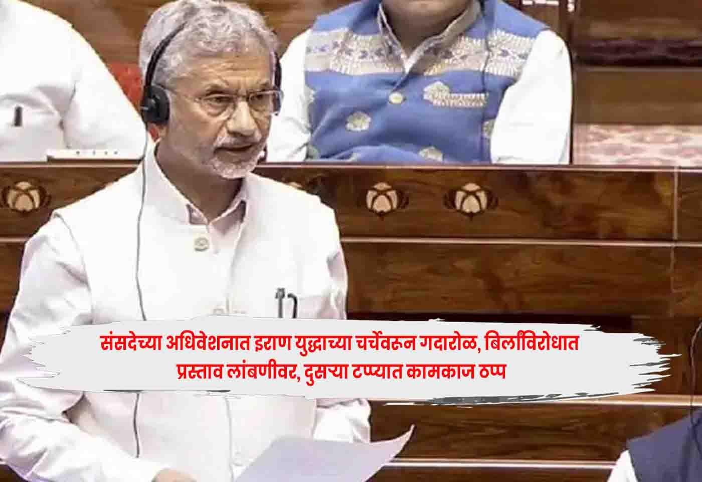 सभागृहाची सुरुवात माजी खासदारांना श्रद्धांजली अर्पण करून झाली आणि दुपारपर्यंत कामकाज तहकूब करण्यात आले. सभागृह पुन्हा सुरू झाल्यावर, परराष्ट्रमंत्री एस. जयशंकर पश्चिम आशियातील परिस्थितीवर निवेदन देण्यासाठी उभे राहिले, परंतु विरोधी पक्षाच्या खासदारांनी घोषणाबाजी करण्यास सुरुवात केली. यानंतर कामकाज तहकूब केले.Parliament