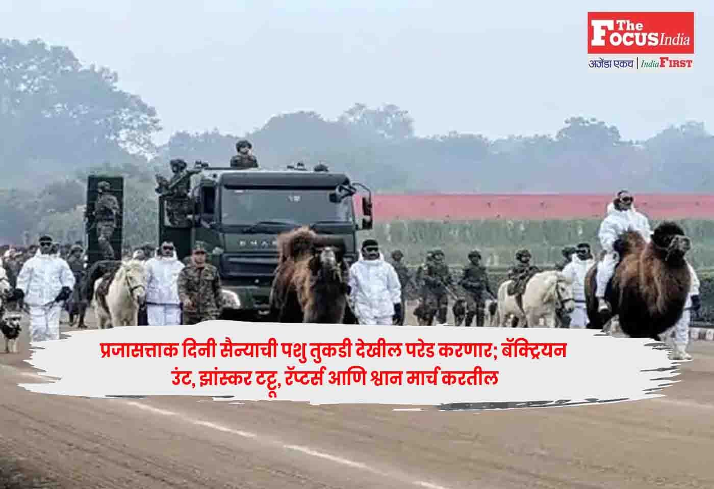 नवी दिल्ली : Army Animal प्रजासत्ताक दिन 2026 च्या संचलनात यावेळी लष्कराची पशु तुकडी देखील मार्च करेल. यासाठी प्रथमच लष्कराच्या रीमाउंट अँड वेटरनरी कॉर्प्स (RVC) च्या तुकडीची विशेष निवड करण्यात आली आहे. याचा उद्देश देशाच्या सर्वात कठीण सीमांच्या संरक्षणात प्राण्यांची महत्त्वाची भूमिका समोर आणणे हा आहे.Army Animal