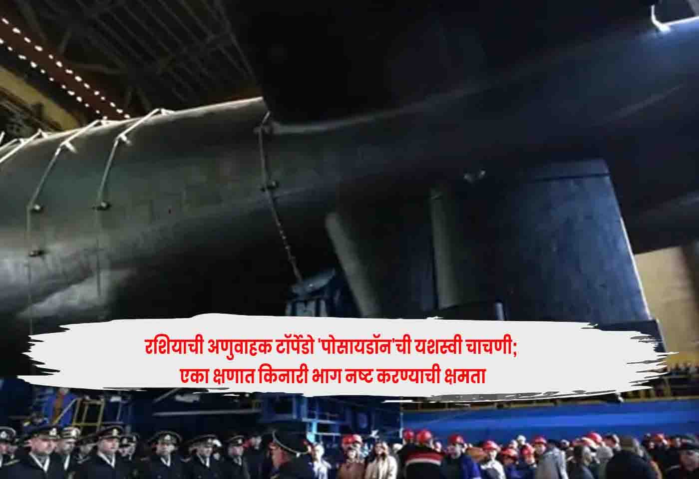 मॉस्को : Russia Poseidon राष्ट्राध्यक्ष व्लादिमीर पुतिन यांनी घोषणा केली की रशियाने पोसायडॉन टॉर्पेडो या नवीन अण्वस्त्राची यशस्वी चाचणी केली आहे, ज्यामुळे समुद्रात किरणोत्सर्गी लाटा निर्माण होतात ज्यामुळे किनारी शहरे राहण्यायोग्य नसतात.Russia Poseidon