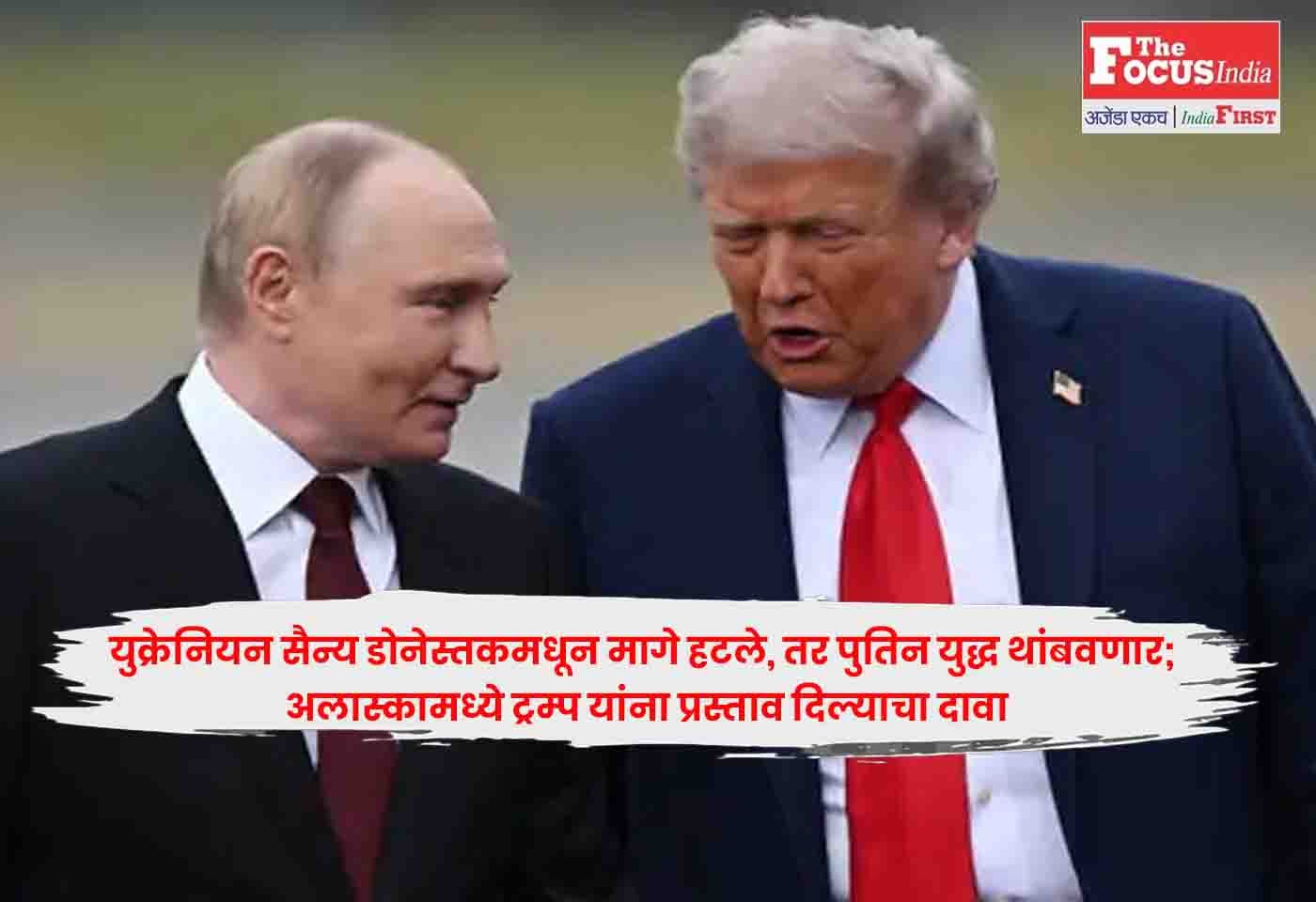 Putin : युक्रेनियन सैन्य डोनेस्तकमधून मागे हटले, तर पुतिन युद्ध थांबवणार; अलास्कामध्ये ट्रम्प यांना प्रस्ताव दिल्याचा दावा