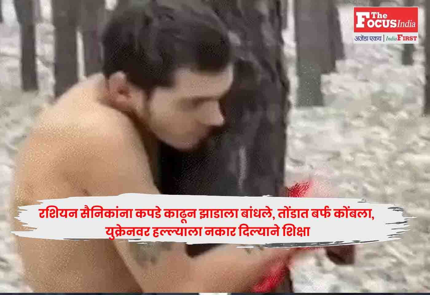 मॉस्को : Russian Soldiers युक्रेनविरुद्ध युद्ध लढण्यास नकार देणाऱ्या रशियन सैनिकांना त्यांचेच कमांडर अत्यंत क्रूरपणे शिक्षा करत आहेत. याचे काही व्हिडिओ सोशल मीडियावर व्हायरल झाले आहेत. अशाच एका व्हिडिओमध्ये काही सैनिकांना कपडे काढून थंडीत झाडांना बांधलेले दिसत आहे. ते कडाक्याच्या थंडीत थरथरताना दिसत आहेत.Russian Soldiers