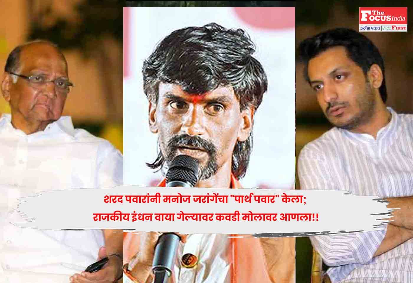 या पार्श्वभूमीवर पवारांनी आज नाशिक मधून मनोज जरांगे यांच्या मराठा आरक्षण आंदोलनाशी राष्ट्रवादी काँग्रेस पक्षाचा कवडीचाही संबंध नाही, असे सांगून हात झटकले. राष्ट्रवादीचे राजकीय इंधन वाया गेल्यामुळे त्यांनी मनोज जरांगे यांचा “पार्थ पवार” केला.