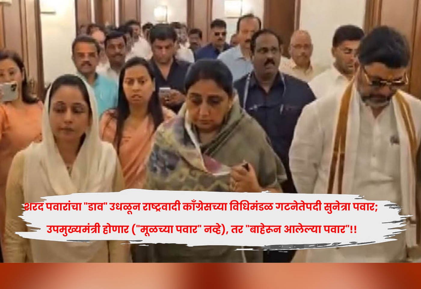 आज दुपारपर्यंत घडलेल्या सगळ्या घडामोडीतून शरद पवारांनी “डाव” टाकून सुनेत्रा पवारांच्या नेतृत्वाच्या निवडीत खोडा घालायचा प्रयत्न केला होता. त्या प्रयत्नांना मराठी माध्यमांनी सुद्धा साथ दिली होती, पण अजित पवारांच्या राष्ट्रवादीतले सगळेच नेते आपल्या मूळ निर्णयावर ठाम राहिले आणि त्यांनी सुनेत्रा पवार यांची राष्ट्रवादी काँग्रेसच्या विधिमंडळ गटनेते पदी निवड केली.