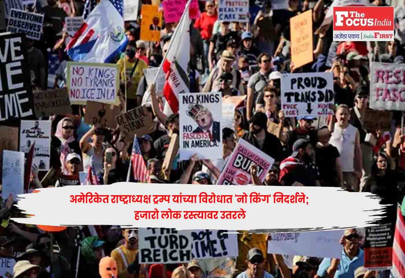 वॉशिंग्टन डीसी : Trump अमेरिकेच्या विविध शहरांमध्ये शनिवारी हजारो लोकांनी राष्ट्राध्यक्ष डोनाल्ड ट्रम्प यांच्या विरोधात प्रचंड निदर्शने केली, ज्यांनी आरोप केला आहे की त्यांच्या राजवटीत देश वेगाने हुकूमशाहीकडे सरकत आहे.Trump