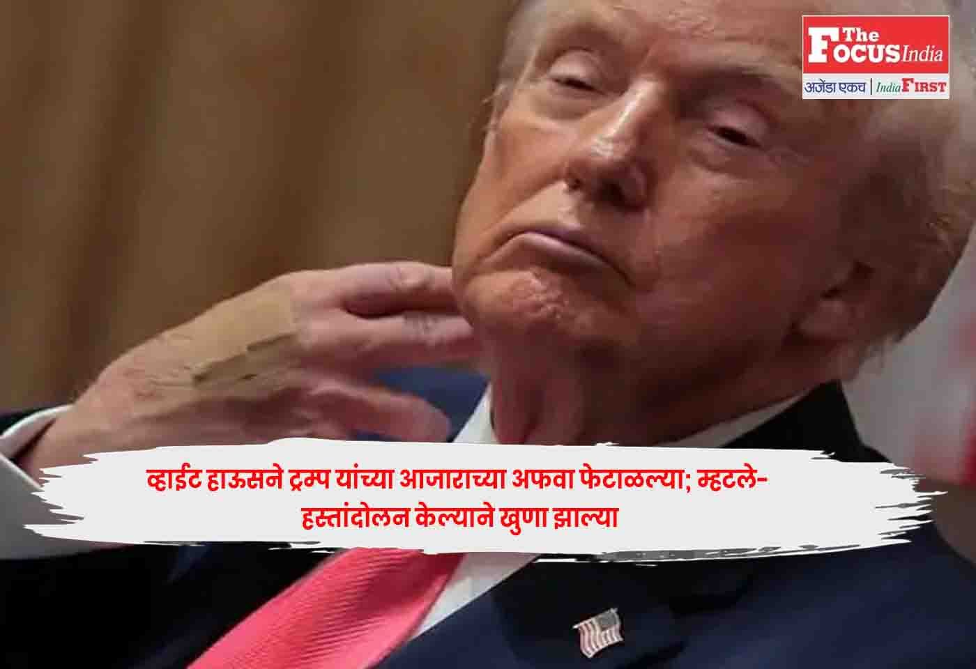 काही मीडिया रिपोर्ट्समध्ये दावा करण्यात आला आहे की ट्रम्प एखाद्या आजाराने त्रस्त आहेत किंवा त्यांना हातात इंजेक्शन दिले जात आहे. व्हाईट हाऊसच्या प्रेस सेक्रेटरी कॅरोलिन लेविट यांनी गुरुवारी पत्रकार परिषदेत या सर्व अफवा फेटाळून लावल्या.White House